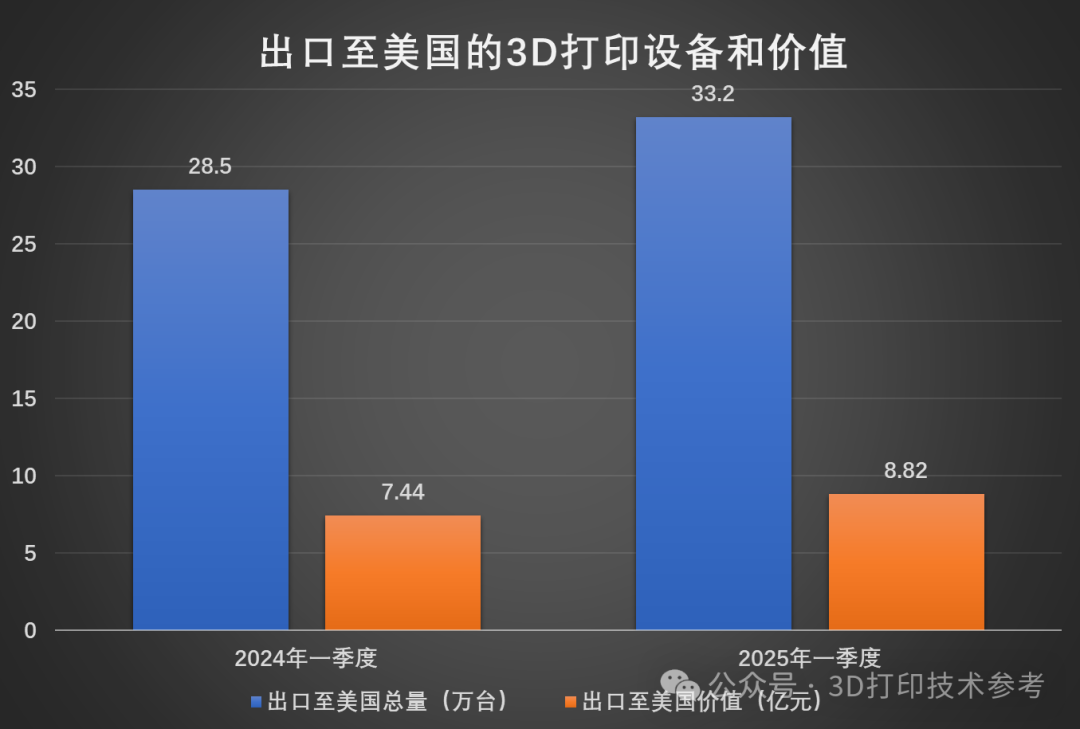 2025年一季度我国3D打印设备出口大涨!96.5万台与23.5亿元!