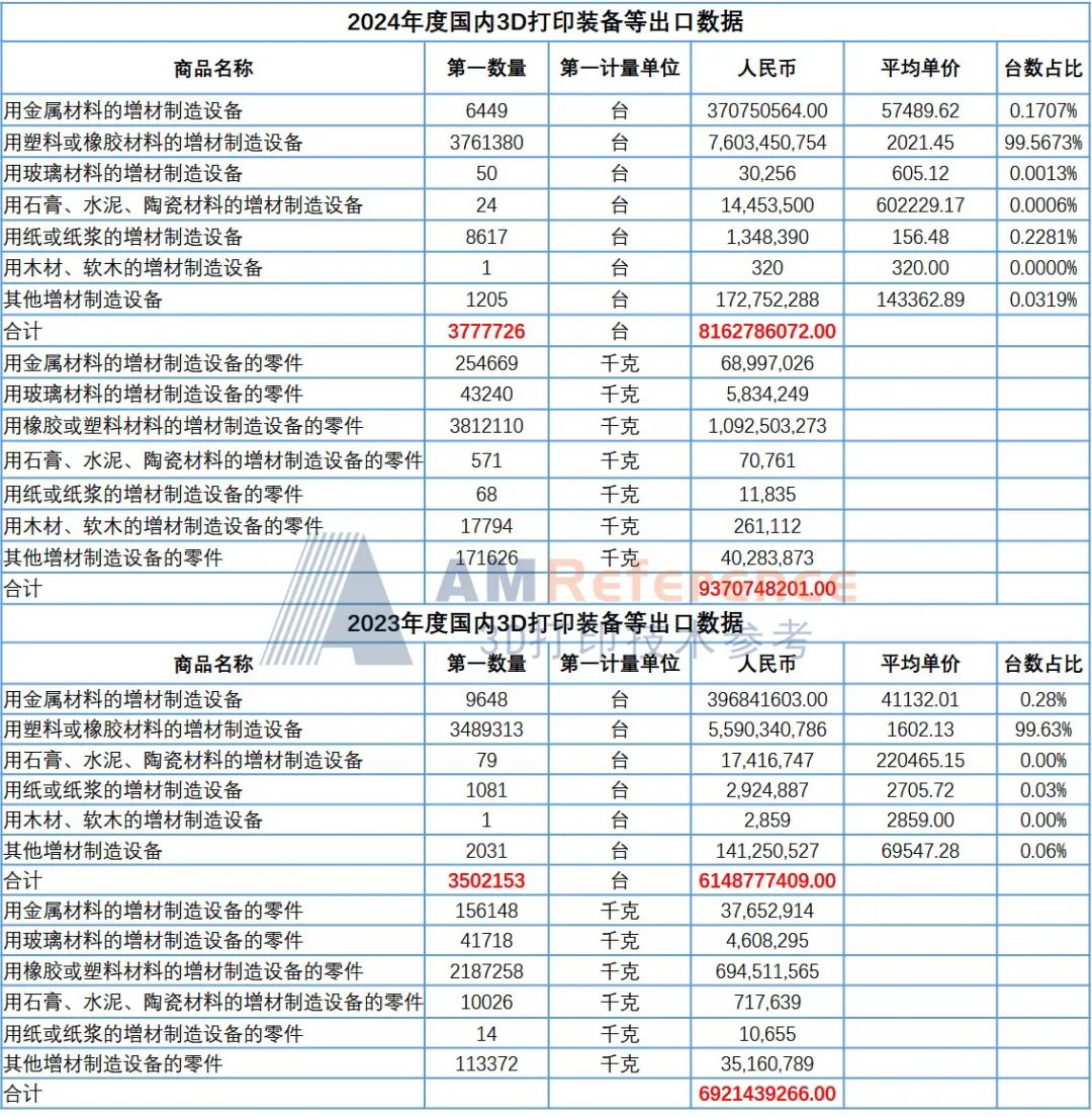 海关发布:2024年中国出口3D打印机377.77万台!出口总值93.71亿