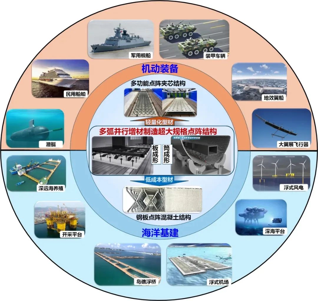 此类多弧并行3D打印装备能够制造什么?它有着特殊的应用场景——为海洋装备结构创新提供了契机。
