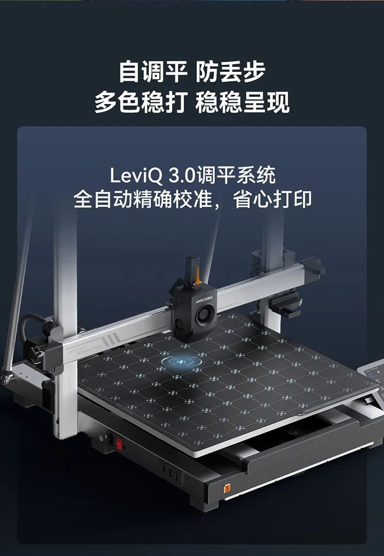 K3MC搭载了LeviQ 3.0调平系统,全自动精确校准,无需手动调整,让打印更加省心。自动续料系统可以在打印大型模型时自动检测线材耗尽,并无缝切换至同色同质线材,无需手动换料,保证打印过程始终流畅。