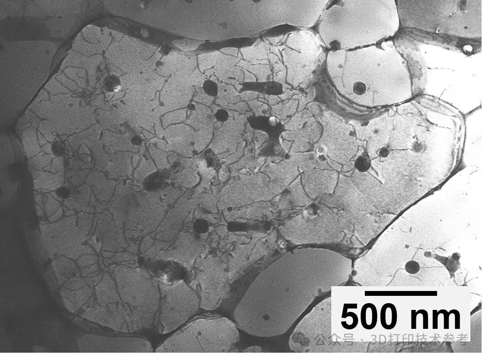 从显微图像可以看出,浅灰区域是铝合金内部传统晶体的截面,黑点是NIST发现的准晶体截面。黑线从准晶体截面延伸而出,这些线条是缺陷,它们破坏了整个合金中传统晶体的模式,从而提高了合金的强度。