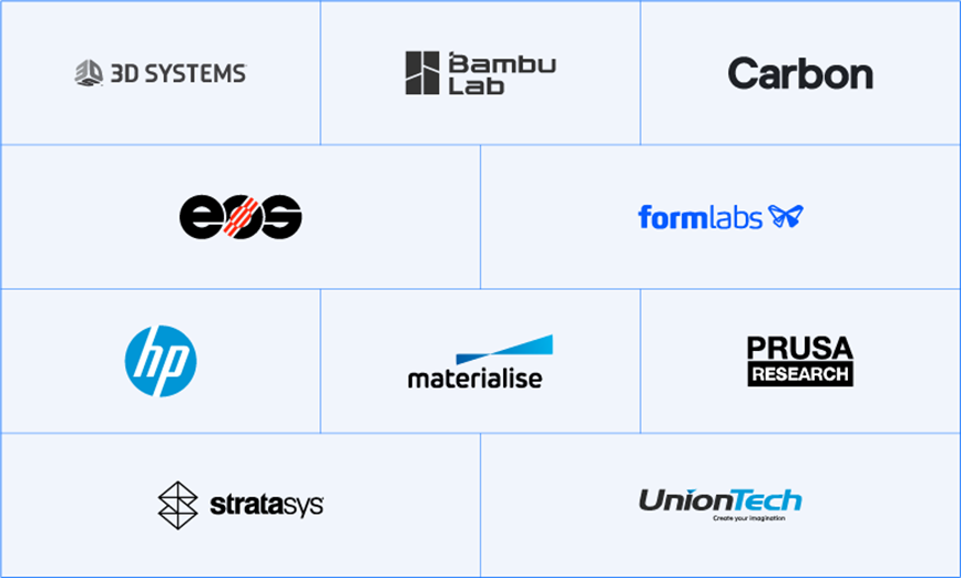 该报告调研的企业包括 3D Systems、ADDMAN(和 Dinsmore)、Airtech、Anycubic、Arkema、Bambu Lab、BMF、Carbon、CMS、Creality、ELEGOO、EOS(和 ALM)、ERPRO Group、eSun、Facfox、Farsoon、FIT AG、Flashforge、GKN(Forecast 3D)、Formlabs、HLH、HP、IN3DTEC、Jingrui3D、Kings 3D、Materialise、MCPP、Nano Dimension(Markforged、ETEC)、OECHSLER、Photocentric、Polymaker、Prodways、ProtoFab、Protolabs、Prototal、Prusa Research、Quickparts、SABIC、Shapeways、Solid Solutions(3DPRINTUK)、Spectrum Filaments、Stratasys、Syensqo、SUNLU、UnionTech/Unionfab、WeNext 等。