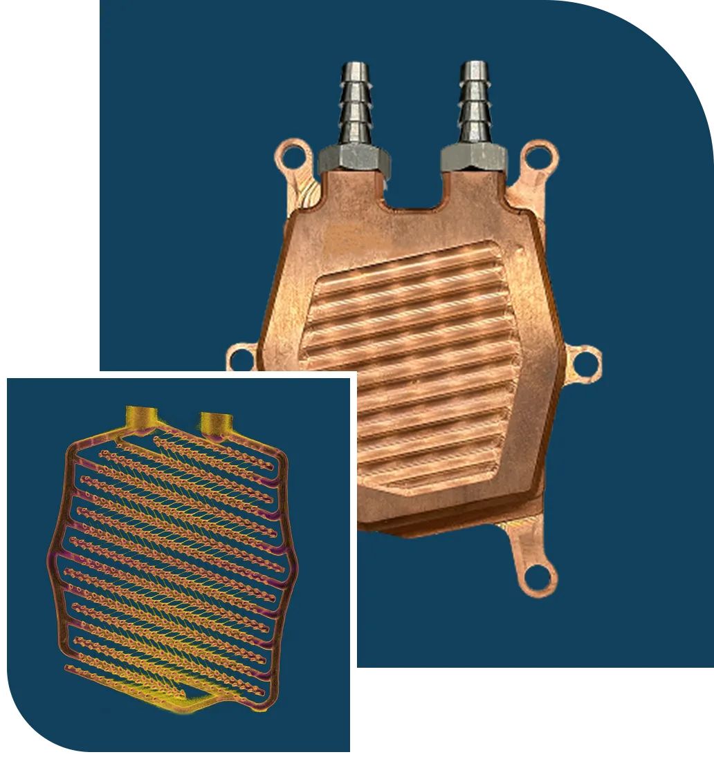 这里我们毫无疑问的会想到采用3D打印技术来制造冷却系统的关键部件。一家名为Alloy Enterprises的公司近日推出了一款基于制造工艺的铜材料直接液冷系统。该技术能够一体式构建复杂的散热器结构,并采用微通道内部几何形状,专门针对现代数据中心硬件的热点进行定制。