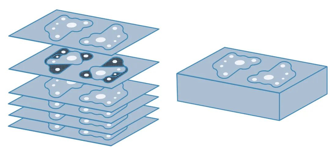 相比激光3D打印,堆叠锻造技术在材料性能、制造效率以及成本方面存在一定优势。相比激光3D打印过程中可能出现的因粉末熔化、凝固等工艺特性导致的内部存在一定缺陷(比如微孔、未熔合等薄弱区域)而引起的力学性能下降问题,堆叠锻造技术能更好地保证材料性能的优异与稳定。在生产效率方面,堆叠锻造技术在完成切片、切割及堆叠扩散结合等工艺流程时,如果设计合理、自动化程度较高,可以实现较为高效的连续生产。再结合材料的成本,堆叠锻造技术在成本方面也具有一定优势。