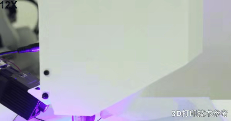 制备好的墨水需要使用热电制冷片将墨水温度维持在-5℃,防止树脂在常温下交联。墨水在气压下按预定轨迹挤出,蓝色激光对刚沉积的复合材料进行局部加热。碳纤维会吸收激光能量并迅速转化为热能,使周围树脂的温度快速升高至220- 240℃,从而引发树脂固化,实现复合材料的快速固化,固化度可达96%-98%。