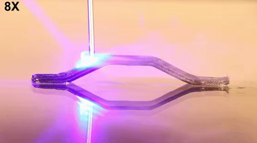 研究人员表示,使用具有更高输出功率的激光源或多个激光源的空间对准阵列可以实现更高的打印速度。同时碳纤维的浓度不会显著影响复合油墨的光热转换和固化速率,碳纤维可以有效地转换入射的能量并在各种浓度下在长丝内传递所产生的热量。在没有碳纤维的情况下,纯油墨不会对入射激光束作出反应,导致打印不成功。