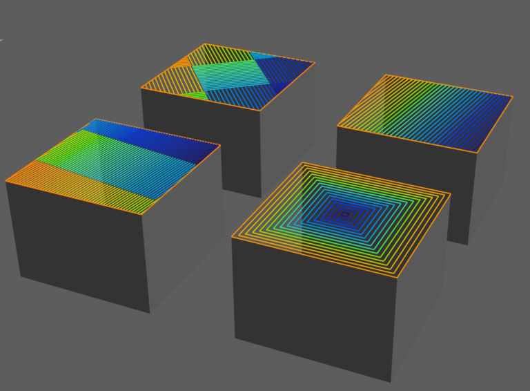 无支撑金属3D打印的实现往往具有很高的技术门槛,但3D打印技术参考注意到,国外一家名为AMSIS GmbH的公司推出了一款仿真软件,它提供了一种SMART HATCHING(智能填充)策略,该策略基于过热的快速初步模拟,有助于最大限度减少悬垂的局部变形,并降低它们与铺粉机构碰撞的风险。