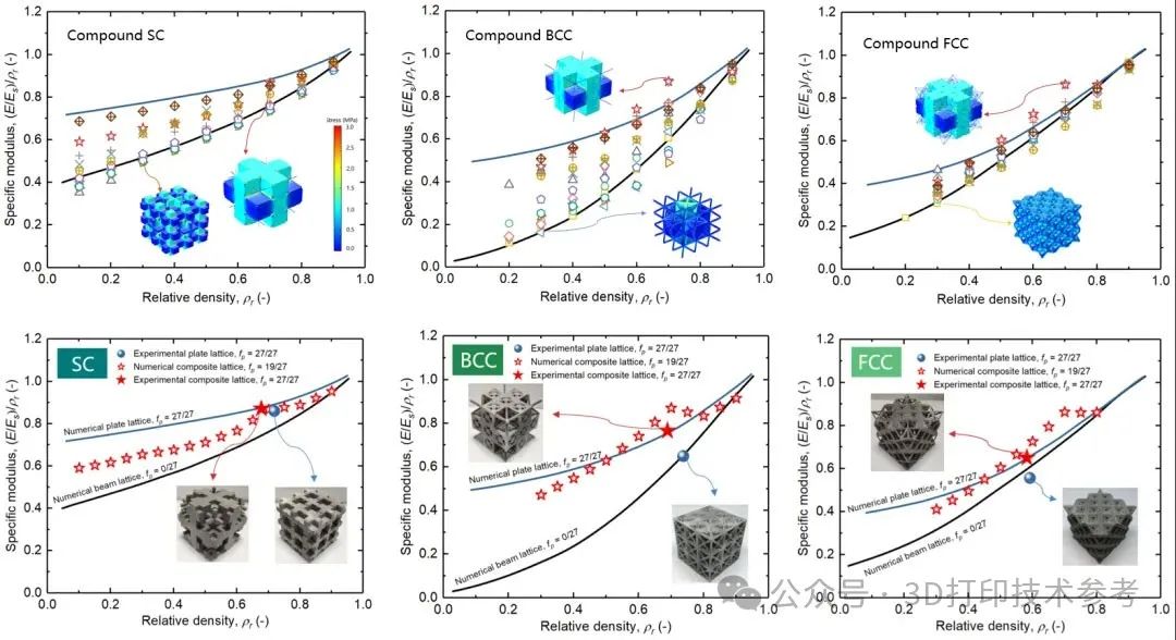 3D打印技术参考注意到,来自大连理工大学工业装备结构分析国家重点实验室与南洋理工大学机械航空工程学院的研究人员于近日首次系统研究了由不同晶胞设计组成的复合晶格,分析了其模量和各向异性,并使用3D打印样品进行了实验验证。