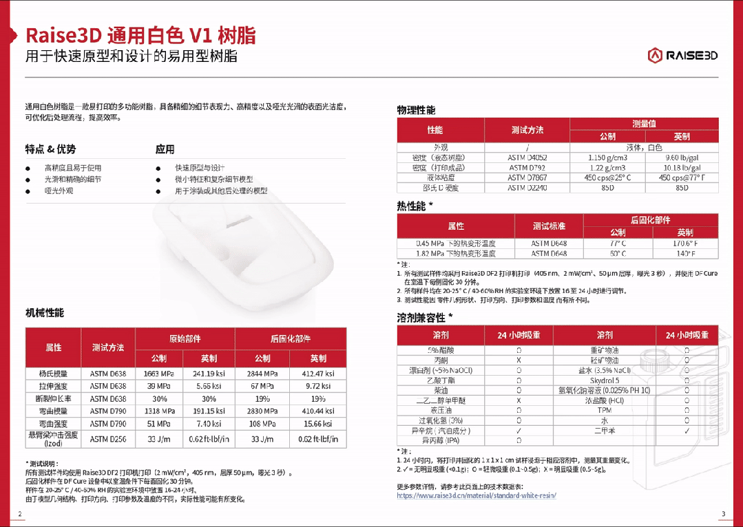 下载完整版《Raise 3D材料手册/树脂篇》