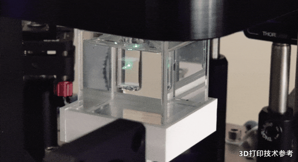 本研究中使用的定制体积打印机使用了405纳米的激光源,通过将光束耦合到一个方形芯光纤中,形成平顶强度分布