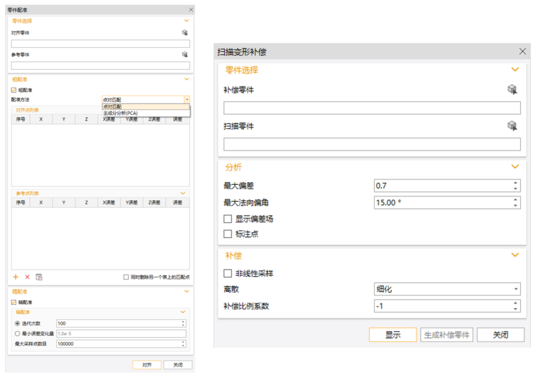 零件配准及扫描变形补偿界面