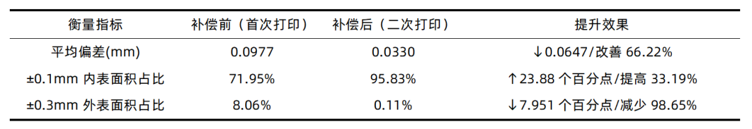 表1 VDE扫描变形补偿技术应用前后薄壁零件3D打印关键指标对比