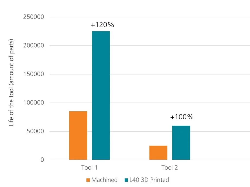 采用L-40材料的传统制造和增材制造模具零件的使用寿命比较