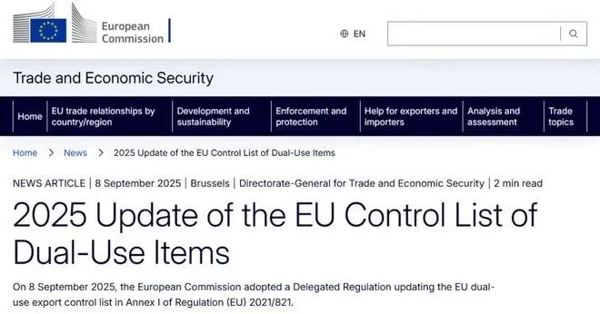 欧盟委员会于近日更新了第2021/821号条例,扩大了受欧盟出口管制的两用物项的范围。清单的主要新增内容包含3D打印系统及及相关材料。如无异议,新规预计最早于11月8日正式生效。