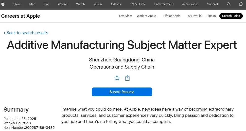苹果又又又招3D打印工程师了,这次信息量有点大!