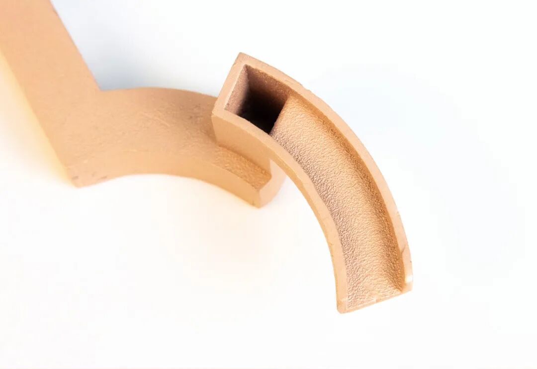 希禾增材纯铜打印不仅提升了散热效率,其绿光3D打印工艺使得零部件内部通道精准构建,内壁光滑,流体流动更加顺畅,同时也有效降低了热疲劳风险。