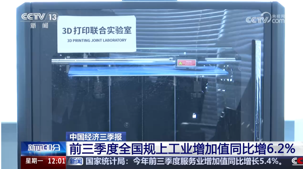 10月20日,国家统计局发布数据显示,前三季度,全国规模以上工业增加值同比增长6.2%。3D打印设备、工业机器人、新能源汽车产品产量同比分别增长40.5%、29.8%、29.7%,以绝对优势领先。