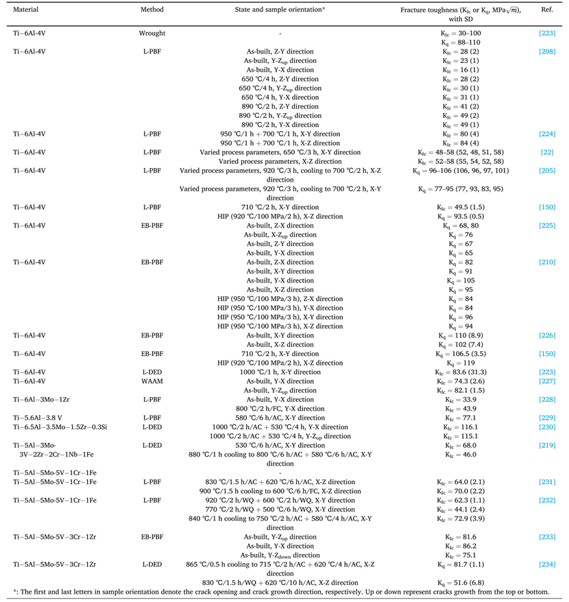 增材制造各式钛合金的断裂韧性的总结