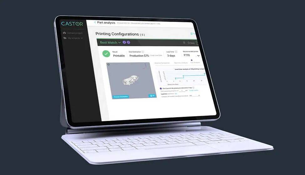 该公司主营基于CAD数据的增材制造可行性分析平台,分析组件在经济和技术上是否适合3D打印。用户可以上传零件模型,软件会评估几何形状、材料需求和成本。尽管曾获施乐投资并与UltiMaker合作,CASTOR仍在运营八年后黯然倒闭,原因或与市场需求不足及商业化难题有关。