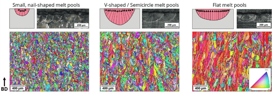 镍基合金熔池形状及其在成形状态下的晶粒尺寸和取向