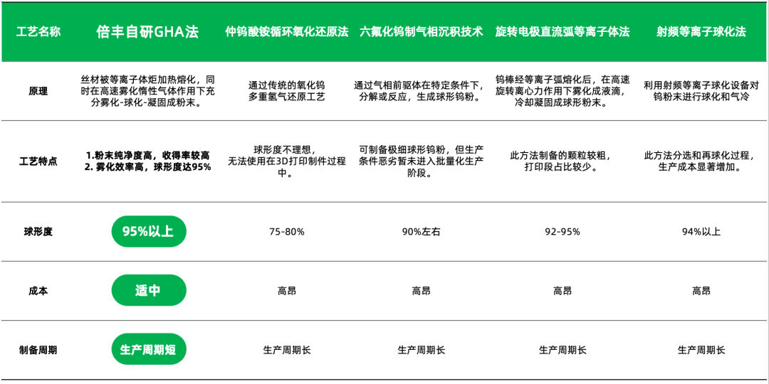 倍丰通过自研GHA工艺将钨粉的生产效率大幅提升,较传统工艺提升近一倍;其次,GHA工艺通过优化雾化流场设计与气体循环系统,显著降低氩气消耗量,从根本上削减了耗材支出。并且GHA工艺摒弃了分选和再球化的工艺流程,大幅降低生产周期,大大提高了生产效率,为增材制造的大规模工业化应用扫清了原材料成本障碍。0:14