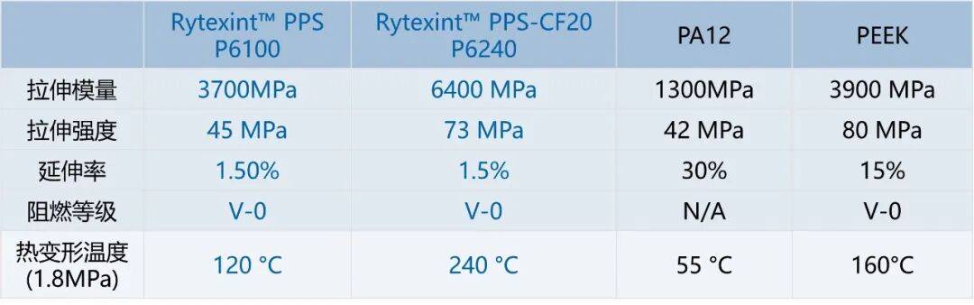 方醍 Rytexint™ PPS 与其他 SLS 材料物性参数对照表