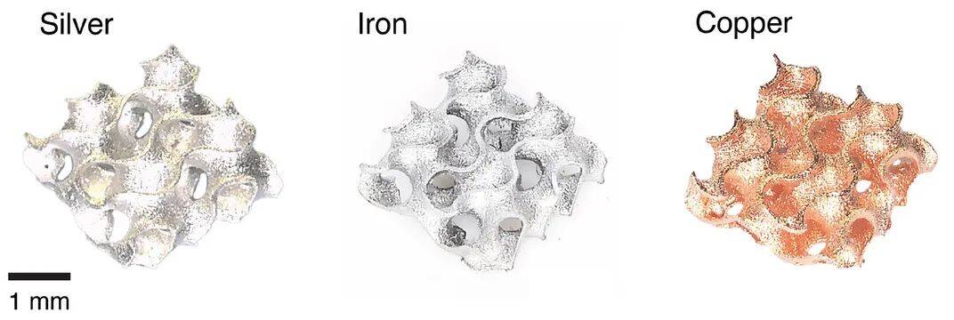 洛桑联邦理工学院基于该技术制造的银、铁及铜