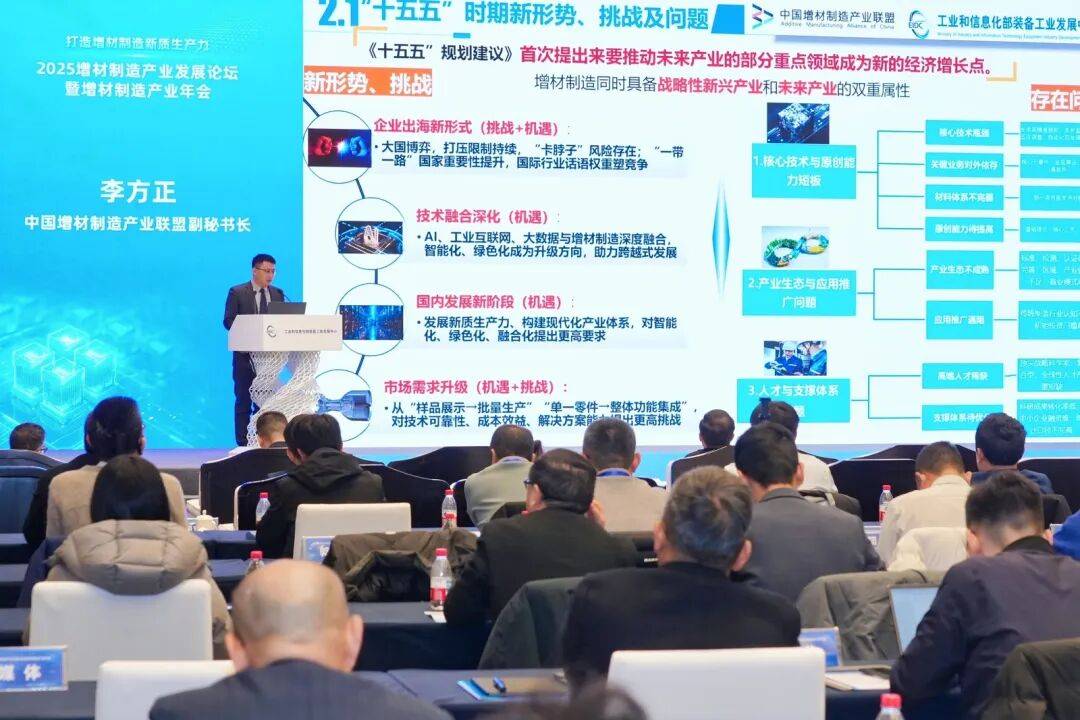 在产业方面,AI、工业互联网、大数据与增材制造深度融合,为产业发展带来了新机遇;但构建现代化产业体系建设对增材制造智能化、绿色化、融合化提出了更高的要求。市场对技术的可靠性、成本效益、解决问题的能力同样提出了更高要求。