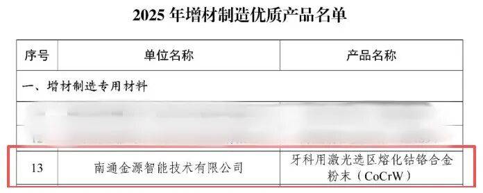 3D打印技术参考在中国增材制造产业联盟发布的《2025年中国增材制造优质产品名单》中发现,由金源智能开发的“牙科用激光选区熔化钴铬合金粉”赫然在列。