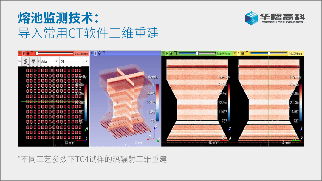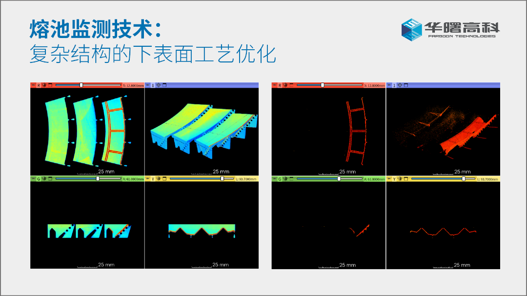 华曙高科采用核心传感器,在激光光路外直接拍摄熔池热辐射,配合高动态范围、高分辨率的硬件配置,实现“逐层采集、在线分析”的监测模式,监测准确率高,可用于过热检测,实时反映工件翘曲、铺粉异常、工艺错误等问题。