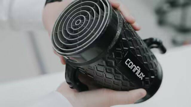 这款部件依然延续了3D打印制造重量更轻、体积更小、性能更好部件的优势。被Conflux公司认为是本年度的重要创新产品。笔者查询发现,它采用航空级铝合金打造,重量只有1.4公斤,而性能接近的传统类似装置的重量达到了16公斤。