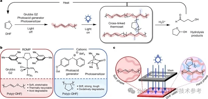 来自美国康奈尔大学的研究人员,在nature发表了题为“Degradable thermosets via orthogonal polymerizations of a single monomer(通过单一单体的正交聚合制备可降解热固性塑料)”的文章,它同样聚焦聚合物循环3D打印的话题。