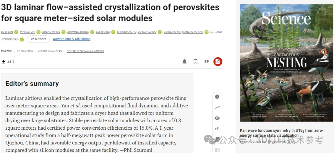 杭州纤纳光电科技股份有限公司以第一通讯单位身份,在Science发表了题为“”的研究。