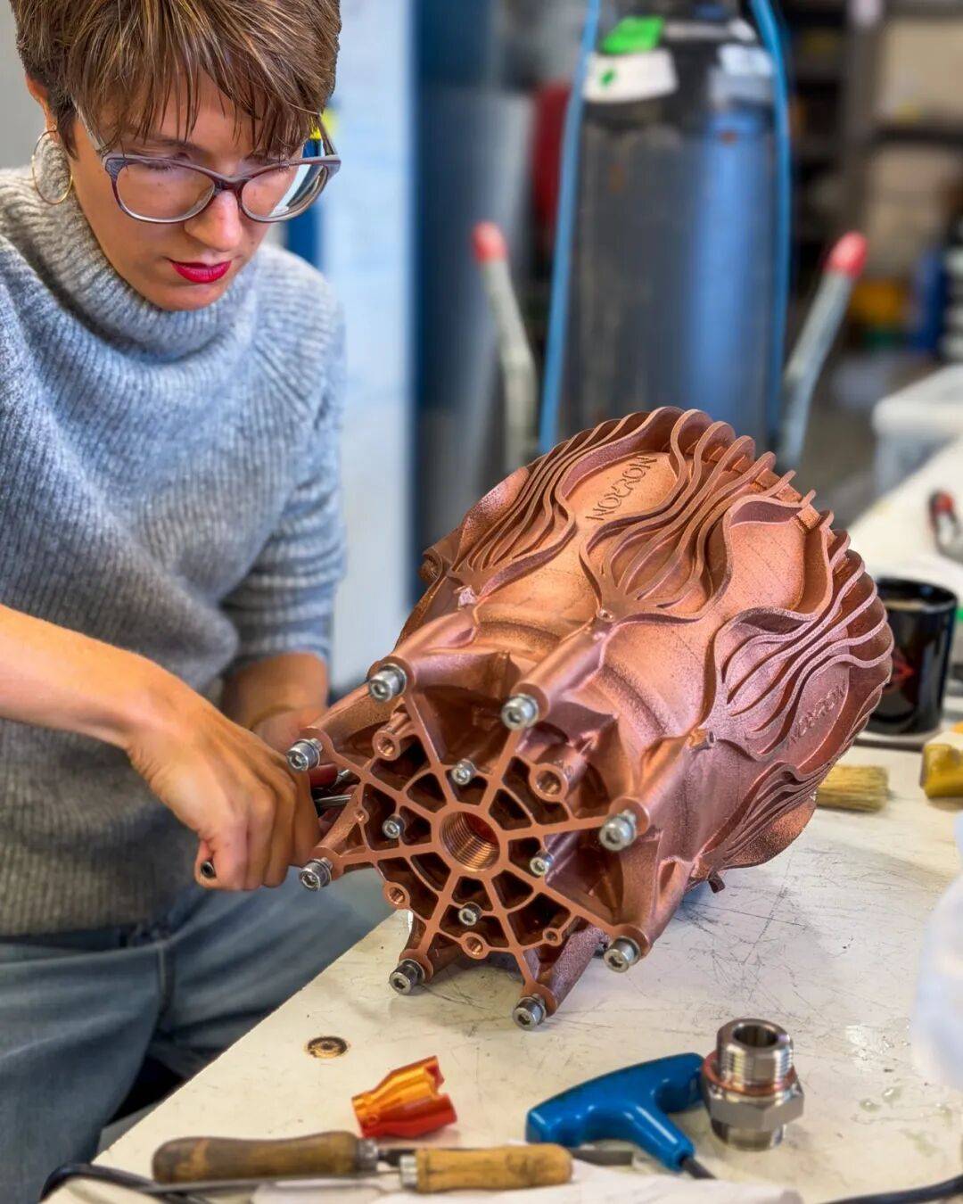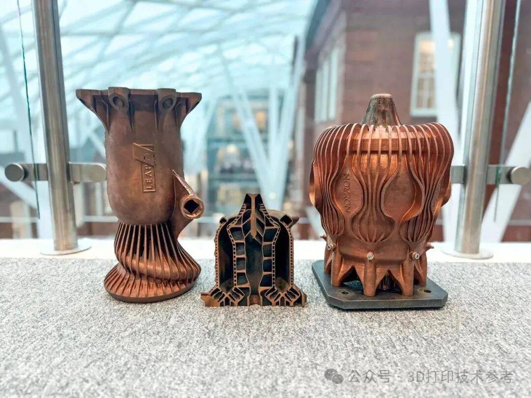 2022年,EOS突然展示了两款通过计算机算法和人工智能以及3D打印技术创建的结构极其复杂的气动塞式(Aerospike)火箭发动机。虽然只是展示样件,但在当时引起了轰动,它是航空航天领域和3D打印行业首个由人工智能创建的火箭发动机结构。这款发动机极其复杂,高80厘米,具有大长径比的薄壁、蜂窝点阵及再生冷却流道。两家合作伙伴都表示,将这种设计复杂性与这种规模的可靠打印能力相结合,将推动新的创新。EOS分别使用M400-4和AMCM M4K系统打印了IN718和铜合金的版本。