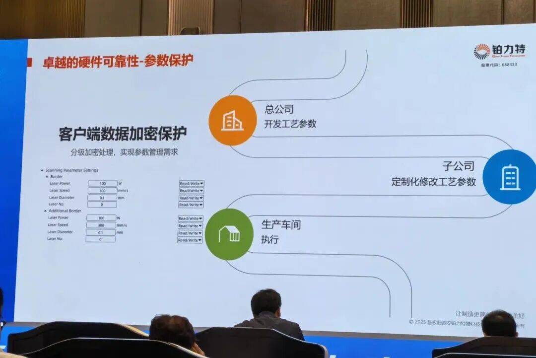 在规模化生产过程中,工艺信息以及数据信息都是商业机密,需要对客户数据进行保护,相关的软件也具备了保密功能,从总公司开发工艺参数,在不同的子公司打印其实是一个黑盒子,只能使用、不能编辑,也不可见,确保了相关工艺数据的内部自循环,避免了外泄,提升了自我的商业价值。