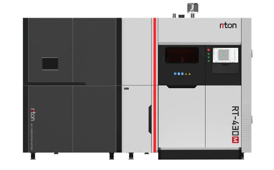 RT-430G是瑞通推出的工业量产机型,追求在成型尺寸与运行效率之间实现平衡,适用于3C、模具、机器人等部件规模化生产。该设备成型幅面为400×400×400mm,配备4激光,能够自动供粉与自动供气,可支持7×24小时连续作业,减少停机损耗。