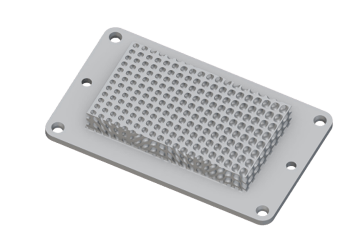漫格科技联合中望软件、希禾增材联合设计了一款包含TPMS结构的纯铜散热器。该散热器底板尺寸为100*60*12mm,表面质量好、成型精度高。