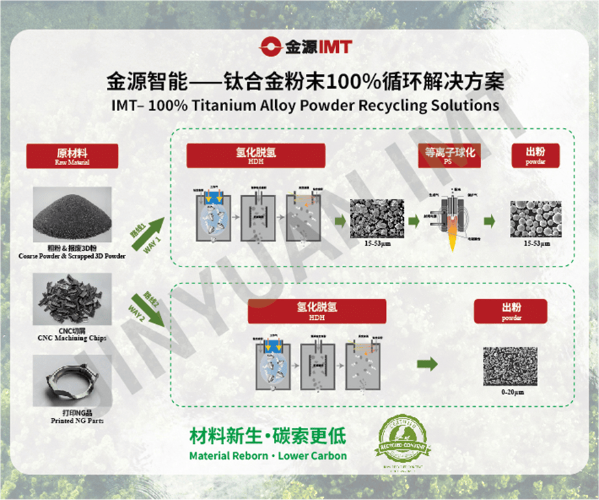 绿色、降碳,是3C行业重要的发展趋势,金源智能以技术驱动低碳转型,自主研发了氢化脱氢(DHD)+等离子球化(PS)生产技术,能够采用粗钛粉、报废钛粉及钛打印件以及机加钛废料等为原料,实现钛合金的100%转化利用,采用该技术制造的钛合金粉末性能稳定可靠。
