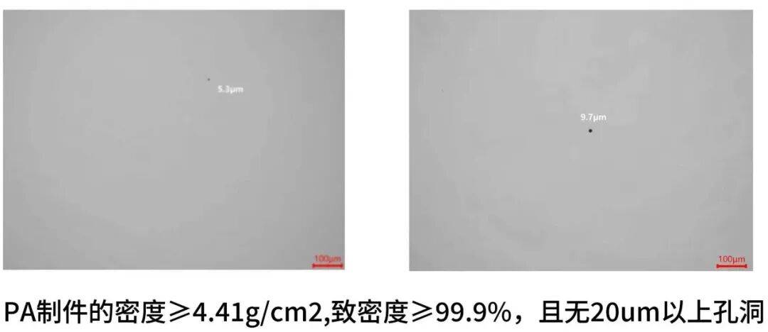 通过PA技术,金源智能钛合金空心粉率成功控制在0.2%左右,卫星球占比0.8%左右,20μm以上的气孔缺陷测试结果显示为0。从源头大幅减少了打印件的缺陷来源,让3C制造商能够以更高良率迎接批量生产。