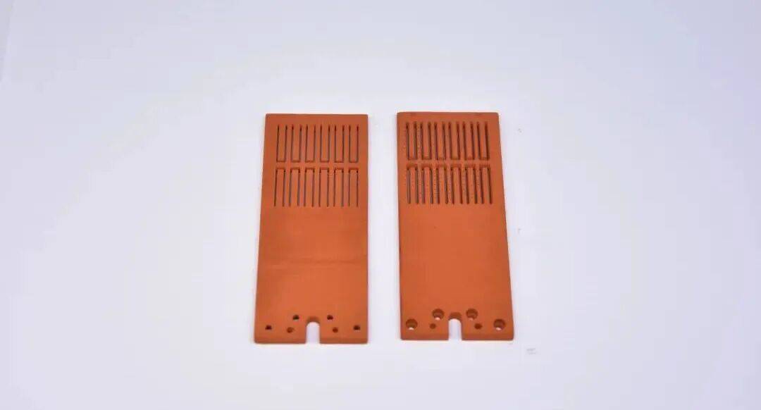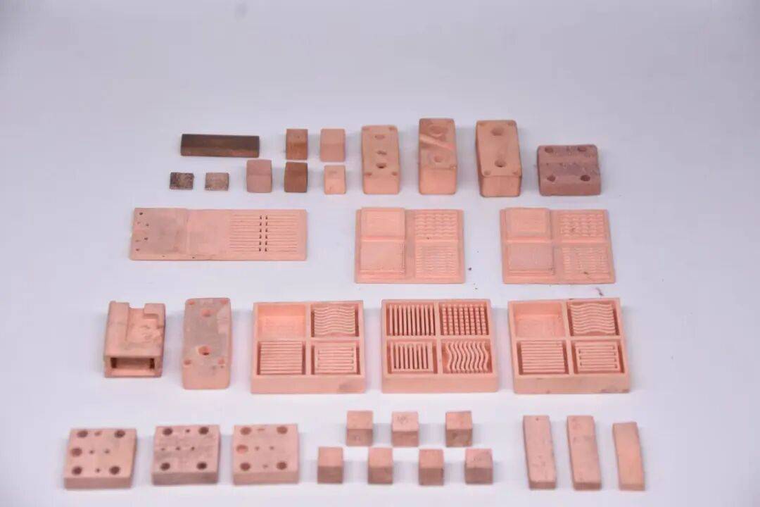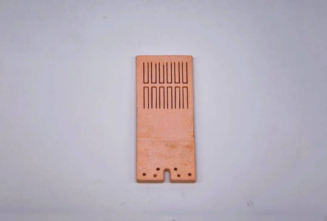 已烧结完成的散热器件,带黑色的是铜金刚石复合材料