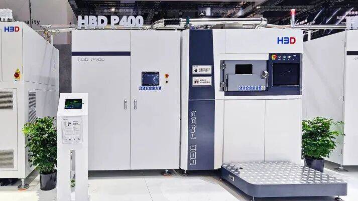 HBD P400是汉邦激光推出的批量生产主力机型,具有350x400x400mm的成型幅面,能满足多样化的生产场景。正如上午所提到的,汉邦激光为该设备配套了粉末闭环系统、自动化集中供粉系统等,打造了数智化产线。