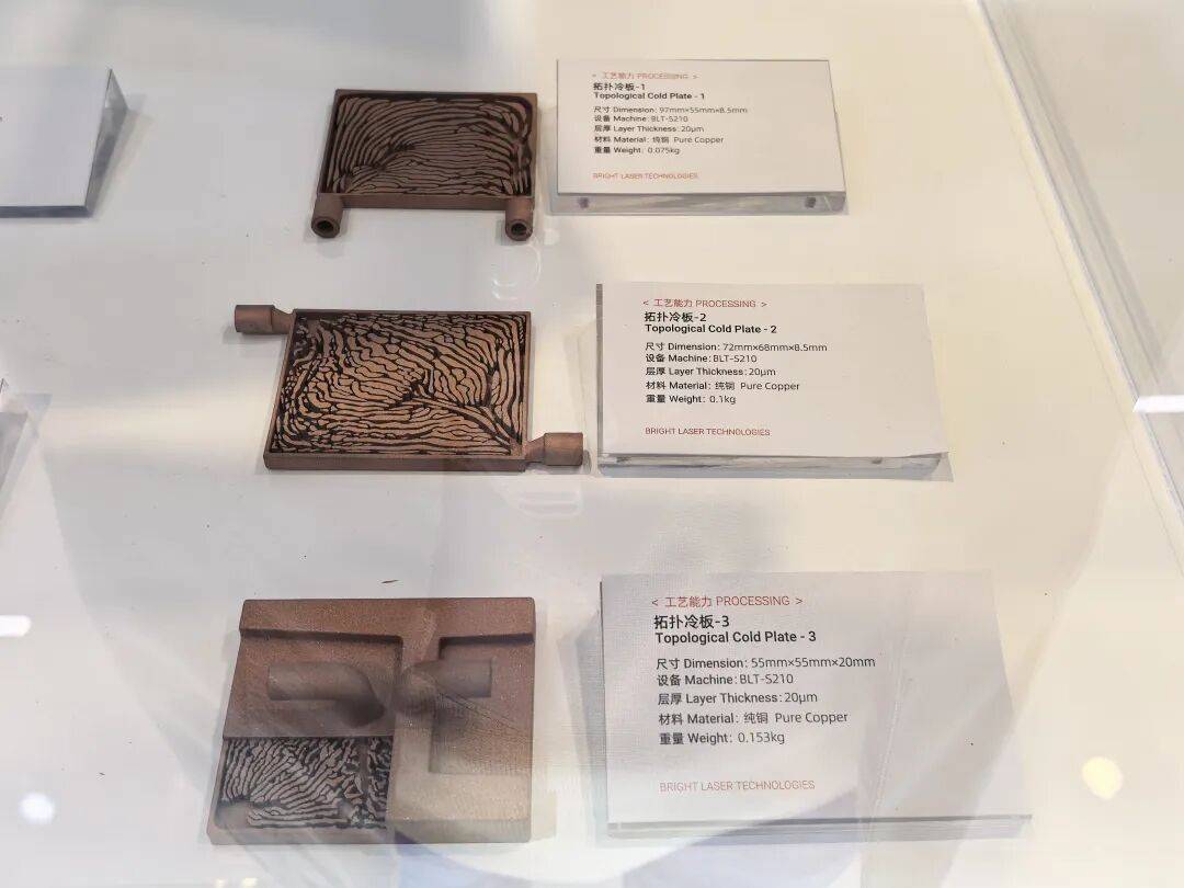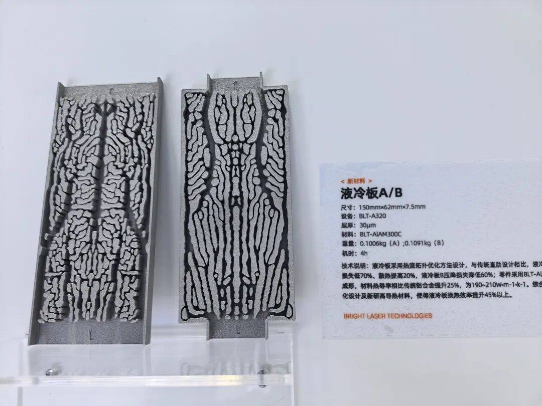 所展示的液冷板与风冷散热器均采用铝合金打印。