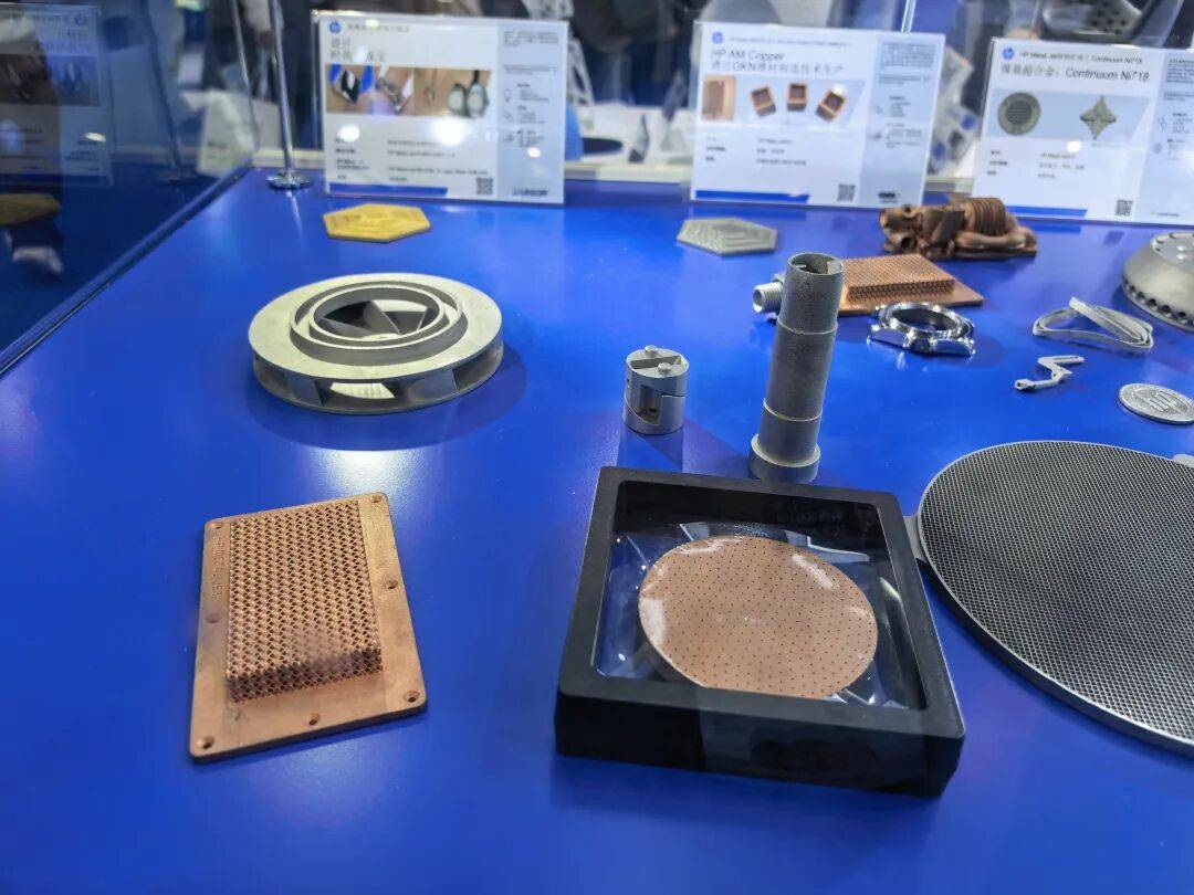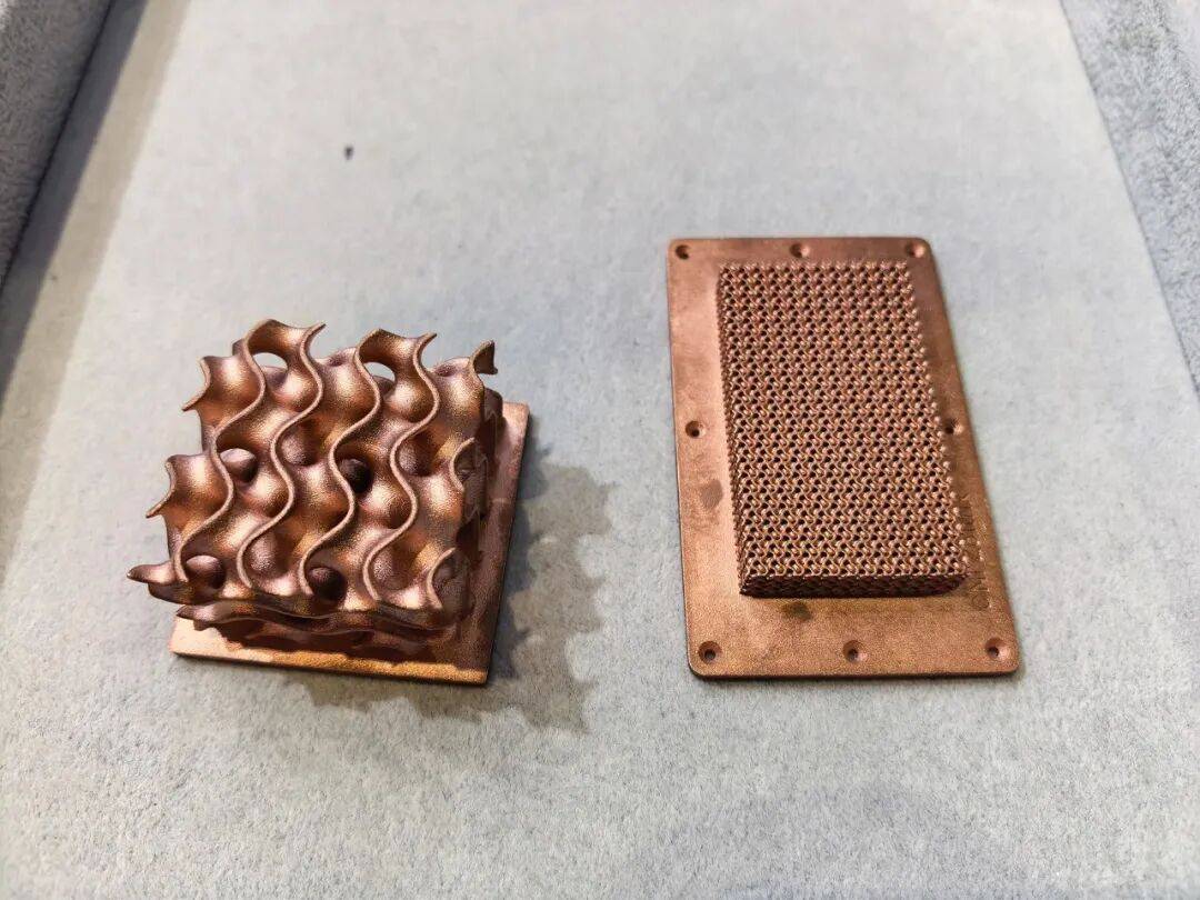 再就是铜及铜合金的粘结剂喷射3D打印应用探索。从去年开始,散热领域应用迅速升温,惠普与国内合作伙伴采用BJ技术,实现了铜及铜合金散热零件的无支撑批量打印,覆盖从小型散热片到中等尺寸组件的多种规格。