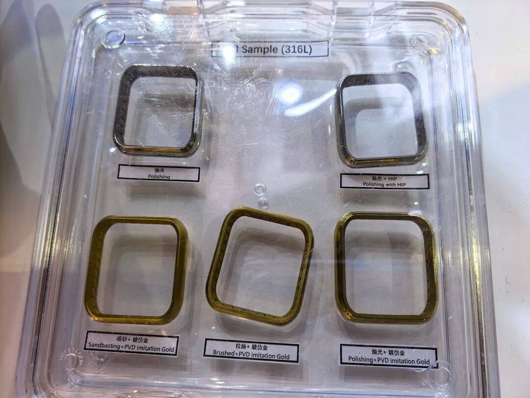 在3C行业,展示了采用该技术制造的表壳,后处理工艺包括喷砂、拉丝、抛光、电镀等。