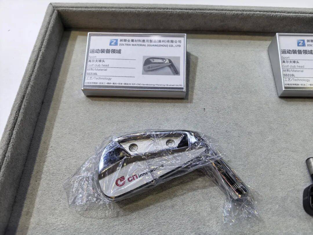 首先在运动装备领域,惠普展示了其长期合作伙伴中南昶联使用Metal Jet技术批量化生产的高尔夫球杆、球头等产品。