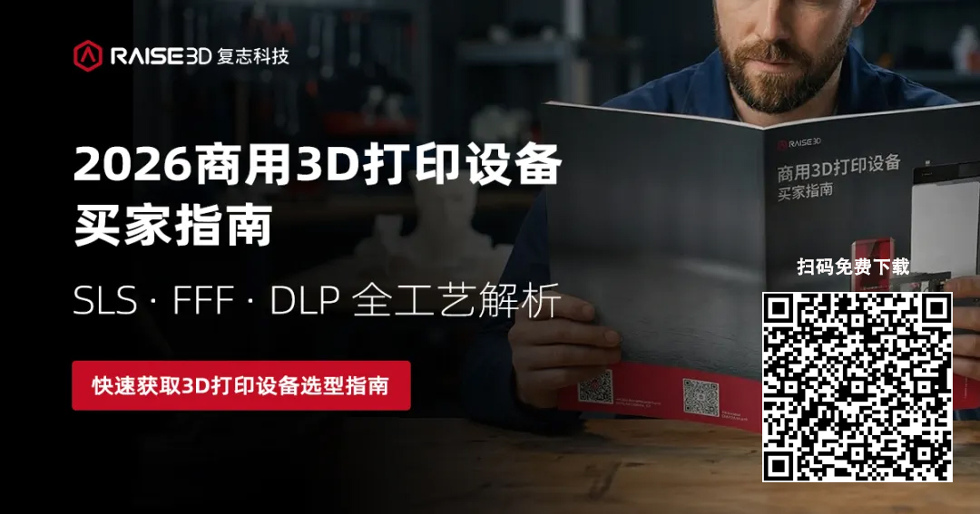 3D打印技术参考注意到,全球领先的增材制造解决方案提供商Raise3D, 于近日发布了《2026商用3D打印设备买家指南》,针对以上问题,该公司试图从全工艺、全场景、全流程的专业视角,帮助用户完成对3D打印工艺认知、评估到落地的完整决策。