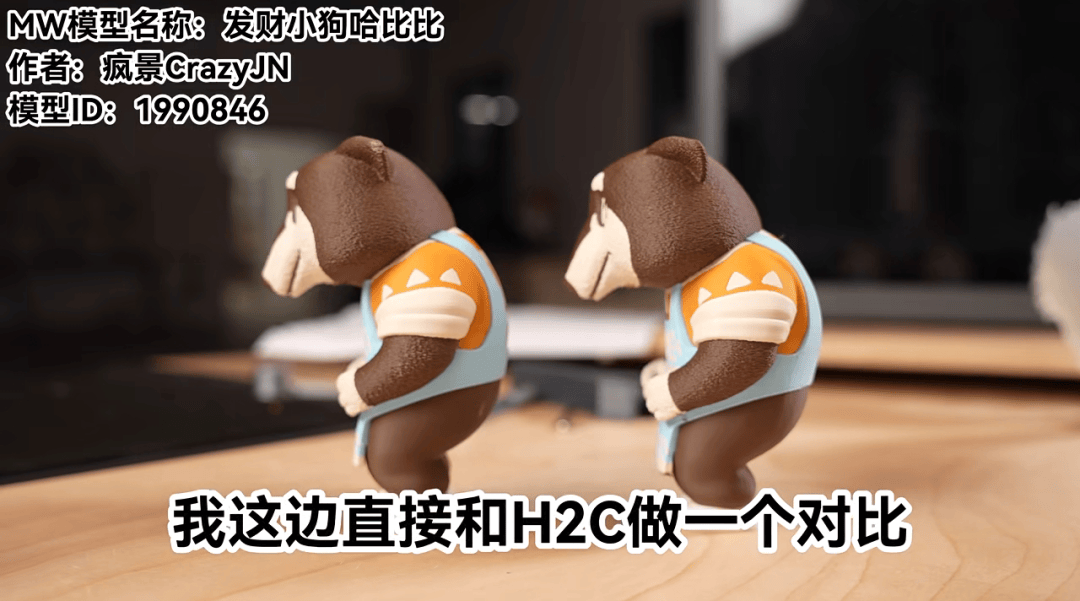 在打印速度和多色打印方面,橙豆造物分别使用H2C和X2D进行了对比,发现两台机器打印的模型难以区分;但打印时间仍有明显差异,H2C需要17小时,X2D需要26小时,但相比单喷嘴的X1的40多个小时仍然快了非常多。