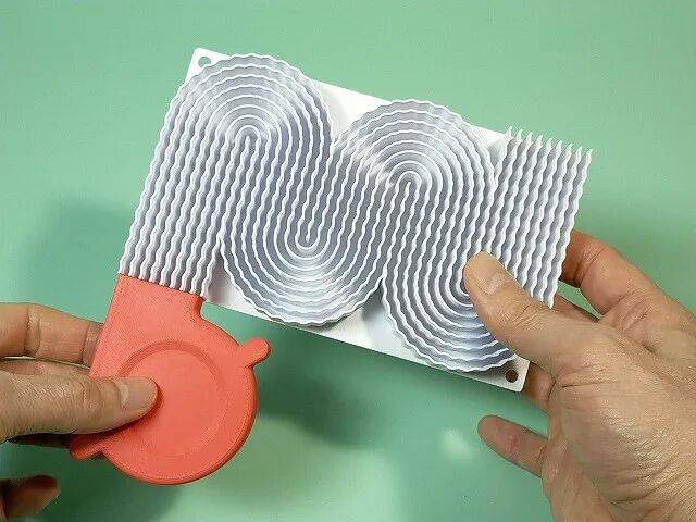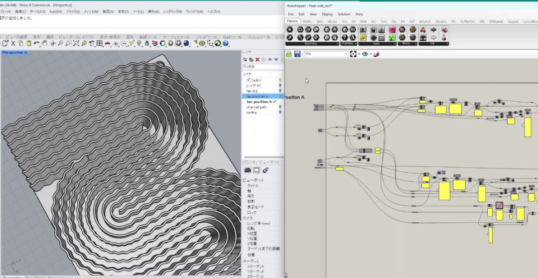 他还指出,所使用的“Grasshopper”是一款用于计算设计(通过编程进行3D建模)的软件,通过改变正弦波的参数(频率、波长、振幅)和通道数等来进行几何设计,因为这对于普通的3D-CAD来说有些困难。
