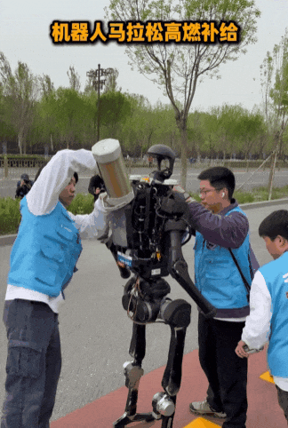 参加马拉松的机器人在更换电池、补充制冷剂等(来自铁卫士机器人)